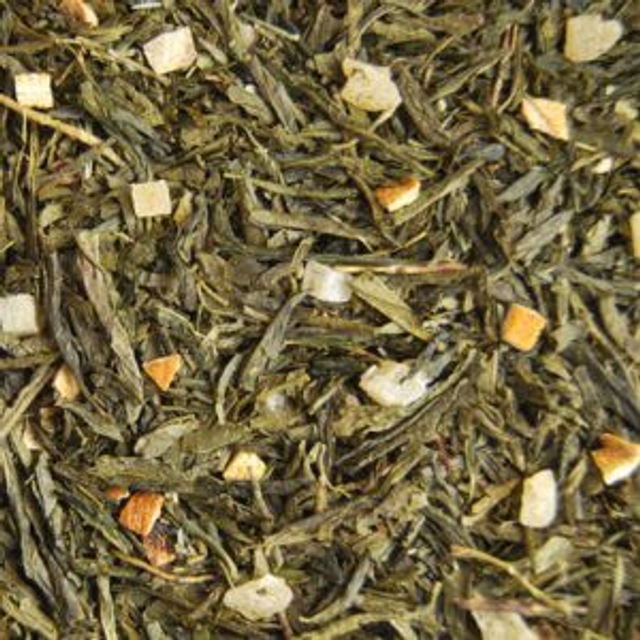 té verde, mate verde, piña confitada (piña, azúcar), cáscaras de limón, hojas de olivo, cola de caballo, aromas